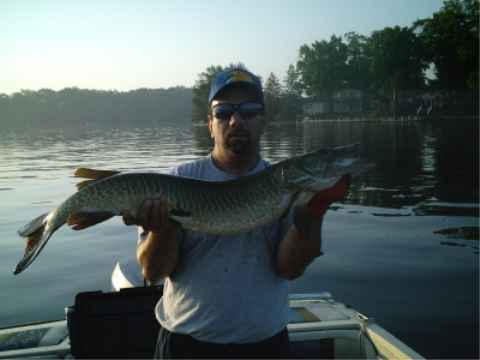 Posts: 425 Location: Elkhart, IN | A couple weeks ago my son received a package from our musky fishing friend ToddM. The package included a Pig he'd made into a topwater for my son, plus some lures he'd handmade that he'd handmade and through in as a complete surprise. Among these really nice handmade lures were two inline buzzbaits. Neither of us had anything like these, and Nick offered to let me have one. Fast forward to monday morning, nothing seems to be happening, so I decide to play with the buzzbait for a bit. On about the third cast I notice there's some waves behind the buzzbait that shouldn't be there. I call attention to my sons (the oldest of which had just flown in saturday night after serving a tour in Iraq, and had never seen a musky in person before sunday night) and Nick gets all excited saying I've got one up. I execute a perfect figure8 and make it through the first half turn and the water explodes. After a nice close quarters battle we've got in the net my second biggest musky to date!! What a rush, man I love muskies. Also a big thank you to Todd for his generousity with the lures and also all the helpful tips he's given me over the last couple years. Thanks man Attachments ---------------- marks fish 52906.jpg (12KB - 134 downloads) | ||