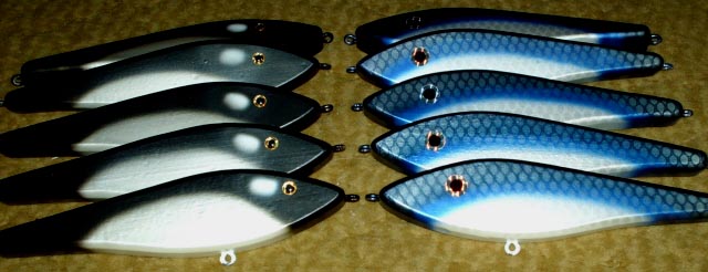 More Muskie Fishing -> Basement Baits and Custom Lure Painting -> Lures for the upcoming outing