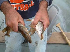 Posts: 53 | Check out this photo. I was fishing in Canada a few years back and found these two pike alive like this. We pulled them apart and they both swam off. Has anyone ever seen this before? Attachments ---------------- hungry_pike.jpg (87KB - 3992 downloads) 2pike.jpg (87KB - 199 downloads) | ||