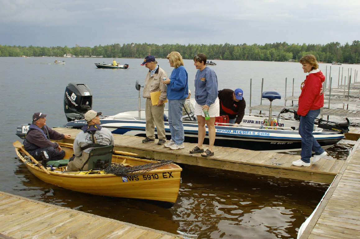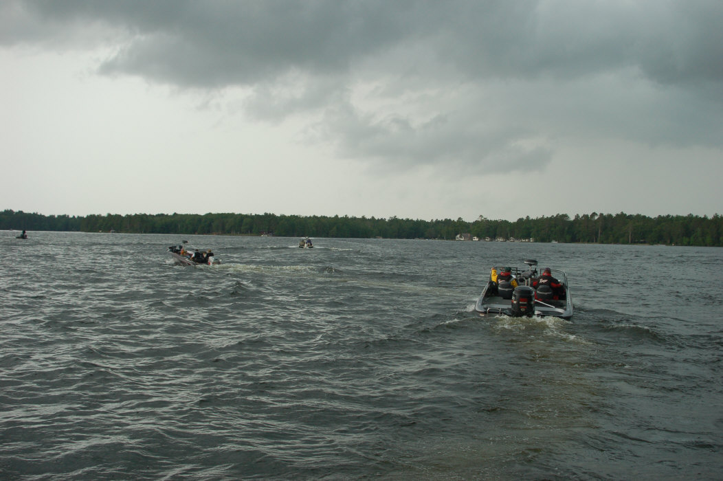 Posts: 7115 Location: Northwest Chicago Burbs | PMTT Mercury Marine Summer Challenge Day One With a full field of 140 boats fishing 10 of the 28 lakes in Eagle River this weekend, conditions appear ripe for some fast muskie action. Fast moving weather and stable air temperature over the last week should have the fish ready to go. Partly cloudy skies turned quickly to heavy rain and thunder at the morning starting point, with the rain tapering off just after boat number 140 rolled past Tim Widlacki to start the day. As this report is being written, sunny skies are surrounded by dark quickly flowing clouds. The forecast calls for coming cloudy skies, with scattered thunderstorms throughout the afternoon. Participants reported action in pre-fishing throughout the chain, but with mostly smaller sub-legal fish coming into the boat. Cabbage growth was stated as being lush, with weed beds accessable from a 10ft. breakline. From observing the boats as they passed the starting point, rods appeared rigged with baits tending towards the hotter end of the color spectrum. Historically, the PMTT Mercury Marine Summer Challenge has been won by teams with a number of fish, with last year's winners of Jason Summers and Tony Dumars registering 44.50, 39.75, and 40 fish. High temperatures and stable weather last year were the conditions by which 37 fish were boated in the 2005 event. This weekends' quickly changing conditions however hold the possibility of much higher numbers, with the definite possibility of larger fish. Stay with MuskieFIRST for the best tournament coverage on the web! *Pictures soon to follow after we resolve existing technical difficulties. Attachments ---------------- ONE.JPG (246KB - 139 downloads) TWO.JPG (211KB - 141 downloads) THREE.JPG (236KB - 148 downloads) FOUR.JPG (239KB - 128 downloads) FIVE.JPG (194KB - 147 downloads) Six.JPG (237KB - 142 downloads) Seven.JPG (245KB - 135 downloads) Eight.JPG (153KB - 146 downloads) Nine.JPG (319KB - 137 downloads) | ||