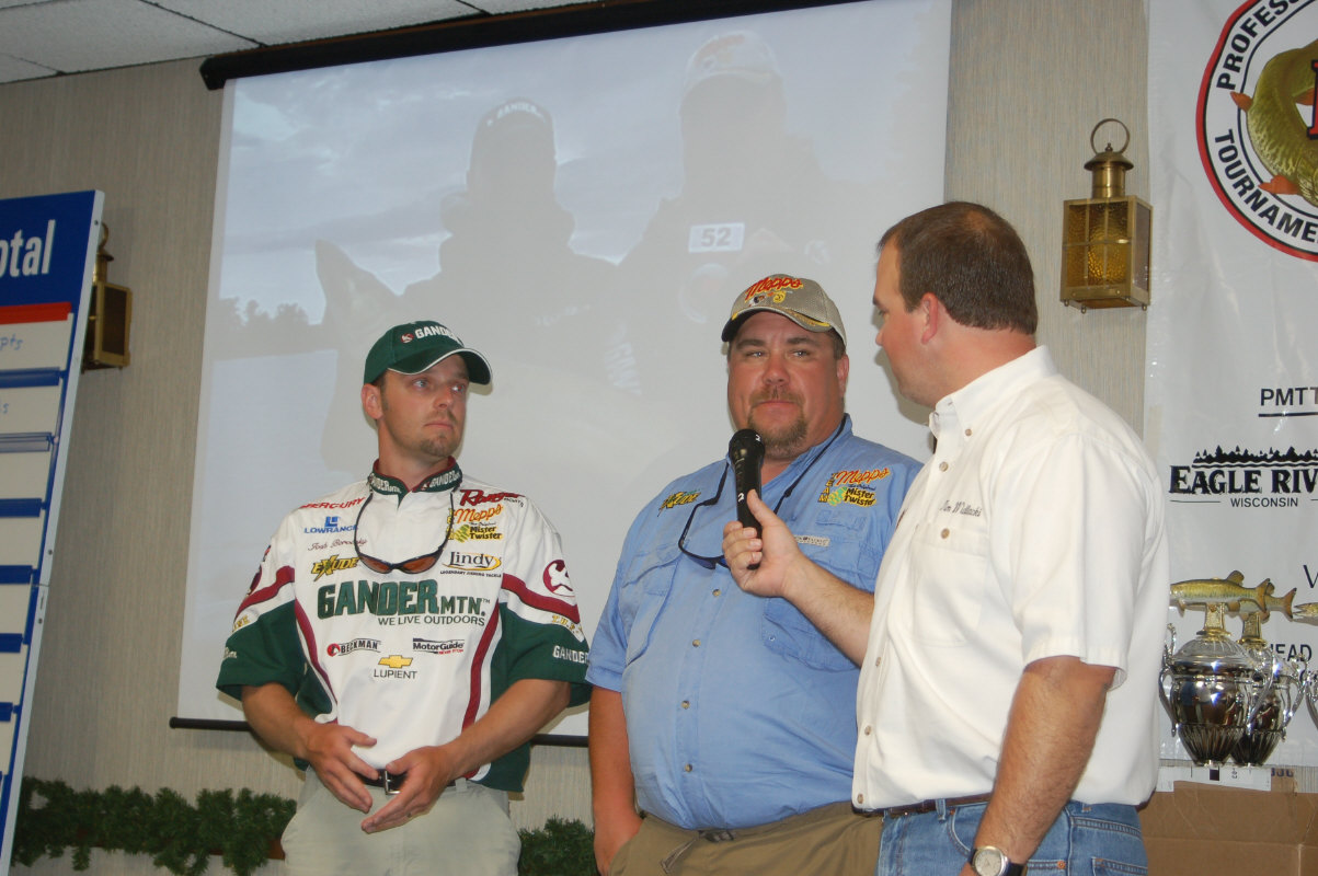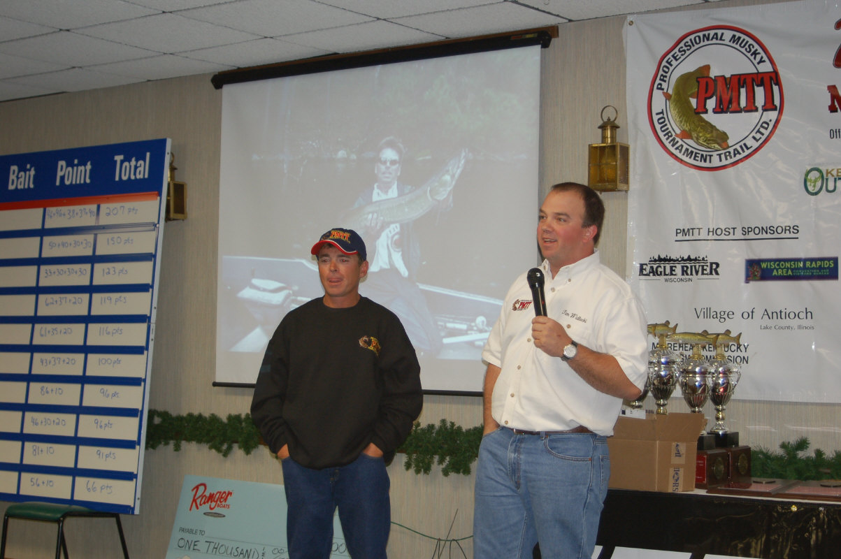 Stormy weather brought the 2006 PMTT truly to life today reviving what had been a 2006 trail comprised of tough days for the anglers. The last event at the Petenwell Flowage saw 13 fish caught, with the first event in early April at Cave Run, KY. bringing 19 in for registration. Today's total of 36 fish not only exceeded fish caught in the combined events at the Cave and the Pete, but set a PMTT one day record for most fish registered. The fish total had four teams doubling up, two teams with triples, and the leader with an amazing four fish day. Along with the numbers of fish, a 40.5, 46.75, and a 48 were aslo caught.
