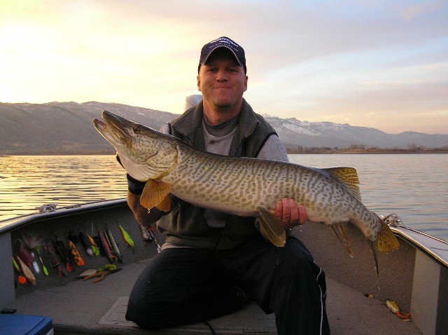 I wanted to jot a note recognizing those who have made this site what it is. As you may know, Utah has recently established a new tiger muskie record at 31 lbs. 11 oz. Well, that seems to have stirred up some interest in fishing for them out here. A local sports show on our NBC affiliate wanted to do a story on fishing for them, so the DWR sent me out to 'show them the ropes'. Normally, I am a bit hesitant to draw attention to something like this - it tends to draw a lot of wholly unprepared people to the fishery. But I figured it was a good opportunity to get the message out about expectations (realistic and otherwise), adequate gear, proper handling, release tools, etc. So I decided to give it a shot. Well, this morning turned out to be the moment of truth; we met at the ramp at 5:30 and proceeded to some likely spots. After a couple of hours of casting and small talk, the host was getting visibly nervous; quite worried about getting a fish on film, after all, footage of casting is rather dull for the average viewer ! So thinking back to the post about spinnerbaits, I proceeded to make use of the knowledge I recently gleaned here. Anyway, one of my tigers volunteered for stardom at precisely 8AM; it wasn't a giant at 37", but one in the net is always good. I love it when a plan comes together. Thanks MFirst for adding to my skill set, my confidence, and for your insatiable need to see tiger pics!