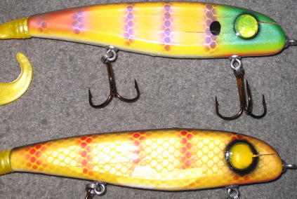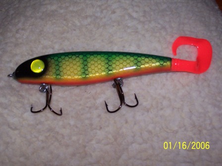 Posts: 3518 Location: north central wisconsin | I have been trying to contact Todd too just to obtain a few more custom regular Phantoms, and have been havng trouble. If anyone knows his current email addy, please post. That said, I have a walleye flavored squirrely and it really has awesome action. | ||