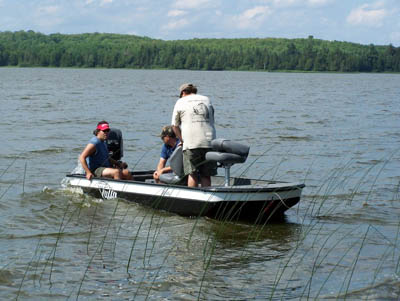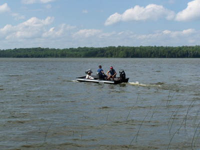 Posts: 1 | I just wanted to throw my thanks in too. This is GMG's 270 pound bro. We really appreciate your help in getting us this boat. It will be replacing an early 70s Lunde guide series with a 15 horse Merc, so this is quite an upgrade for me. In GMG's pics, we have the boat overweight I'm sure, with me, GMG and my brother in law in it for a spin. Looks like the ultimate low rider and I can understand why he's holding on for dear life. Palmer had waves you could surf on that day too! The motor does look big. Makes the Esox look like a drag boat. Believe it or not, its not maxed. Its rated for a 35 and the motor we have on it is a 30 4 stroke efi. I think the mounting makes it look a lot bigger than it really is. She does get up and go. Perfect boat for the 400-700 acre lakes it will be used on. | ||