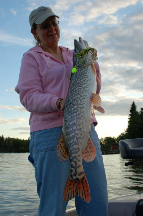 Posts: 32954 Location: Rhinelander, Wisconsin | The same thing happened to Sue this summer on Wabigoon. We had just talked to the Inspector in Lew's bay, and she had decided to sit on the front deck and rest for a while. She had a Violent Strike Spinnerbait tied on and had it a foot out of the water, when a 36" pike leaped up and slammed the lure. I couldn't figure out WHAT she was doing, but eventually helped her up while she fought the fish, and won. Attachments ---------------- DSC_0105.JPG (75KB - 84 downloads) | ||