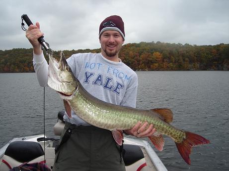 Posts: 21 Location: Carbondale, IL | Got out today, caught one small muskie(20") and had a mid 30 follow, not too good of a day, but what a wonderful day to be on the water!! | ||