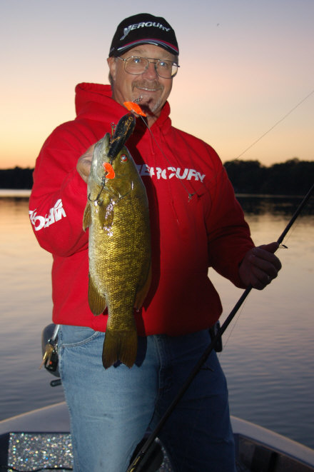 Posts: 880 Location: New Berlin,Wisconsin,53151 | Nice smallie Steve, it reminds me of the hog that Sanks caught on a 10" buck tail. He didn't think it was a muskie when it hit but fought like hell. 22 1/2"s when released. Oh the variety of fishing. Bruce | ||