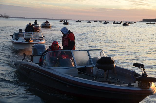 Posts: 507 | It's partly cloudy and mild with the temperature at 59 degreres and winds south east at 9 MPH this morning. A thunderstorm is likely this afternoon as a cold front approaches from the west, and winds are forecast to be 14 MPH out of ther south. Today should produce some serious action for the 183 teams hitting the water competing for the $20,000.00 first prize. Look for updates during the day today and a wrap up for the Saturday competition this evening. | ||