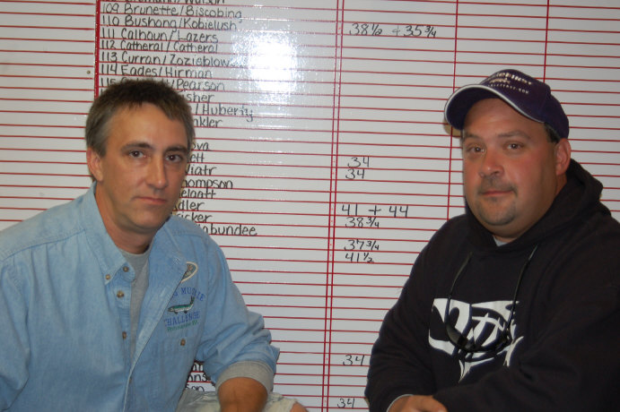 Posts: 32955 Location: Rhinelander, Wisconsin | Dave Jonesi and Troy Adler held onto the the lead today with their 41 and 44" double, but Team 240, Schyeizer and Sexton, are hot on their heels with a double of their own at 41.5" and 40.75". There were six other doubles out of a total tally of 42 fish caught on Day One of the Salmo Hodag Challenge. Herman and Herman are just behind the second place team with a double measuring just 7 points out of second. The weather tomorrow looks good with a couple thundershowers forecast under cloudy skies and SW winds at 10. The Teams will launch at 7 AM and fish until Noon. Attachments ---------------- DSC_0102.JPG (91KB - 138 downloads) DSC_0105.JPG (100KB - 132 downloads) | ||