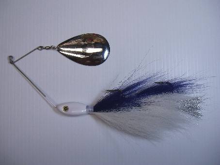 | I like the ones that I got from you this year. Though they went fishless, it's not because they didn't try. I just couldn't keep them pinned. Little pike were always stuck good.....I bet that only happens to me. I would like to see some with 8/0 round bend hooks, and use a single spin instead of the tandem Mustads. Don't anybody jump my a$$, it's just my preference. I hook more fish on single hook spinnerbaits, with 2 or 3 skirts and a 6 or 7 inch trailer. Caught some awesome smallies pulling those off steep breaks and then letting them helicopter. I made some for myself out of 2 ounce blanks with 7/0 and 8/0 single hooks and #7 and #8 single willow blades. I used them much like I would a crankbait, only they were much easier to figure 8. I pulled them right through schools or pods of bait that was 20 feet deep or less in 50-70 feet of water. I always thought that Indiana blades were more visual that anything else, but at that size, they put off a lot of vibration. Nice lures for my daughter to use as well, and they are an excellent trolling option too. Easy hook removal too. I can't wait to make some black nickel single spins for this upcoming season. Jason, since I just made a few for myself, I used snaps for putting the blades on so I can change them at will. Do you ever do that, or plan on doing that or do they open too often? Beav | |||