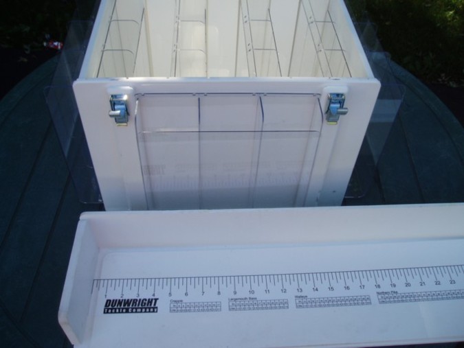 i have a new dunwright box... that is about 6 months old..it is the standard size i believe with the 7 slide out compartments. im in the south burbs of chicago..this is a pick up only, i do not want to ship it ...im asking 100.00 (bump board not included it is so that you can see the box size)