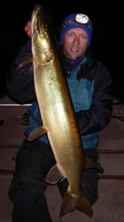 Posts: 427 Location: Wausau | Fished Friday night with Sled and Big Hags on Minocqua - nothing going. Went out on small cisco lake and Sled had one hot on his lure for 4 turns, but it did not eat. I was tossing a Big Joe and on the next cast she ate - 39" (Thanks for loosening the lid Jon). Did not see a fish the rest of the day. Headed back on Sunday to fish the WI River with Hags and Big Mo, but again no go. There's always next time - hope is alive! Edited by agrimm 10/17/2006 8:15 AM | ||