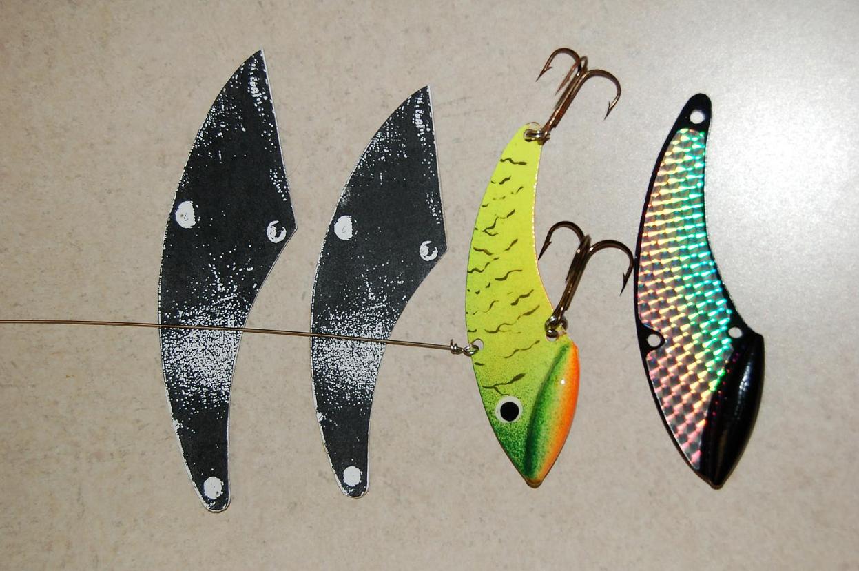 | I like the smaller original size one. I have had the best luck staying near the bottom and even hitting the bottom slightly with each pull. They almost always hit on the fall so "follow" the line back down on the fall without putting tension on the bait. I think Shumway stopped putting the rigid wire leader on the baits. I would highly recommend a 12 " piece of .051 wire looped directly to the bait and a loop on the other end to tie directly to. It nearly eliminates fouling. Also, watch the hole in the bait where the leader gets attached. If you do enough of this jigging, you will wear through eventually. My favorite spots are hard bottom (even just sand) flats in 25-35 feet of water near an area where you know Ciscos are spawning. One last thing I'd like to offer. I started making my own design of this type of bait. It looks like a huge Zip-Lure. It works much better than the F-D. I started making my own for one reason. The F-D's take too much force to get them wobbling. If you are lifting them 36", the first 18" is wasted because they take too long to start wobbling. The one I designed starts wobbling immediately. It make a difference. I have also noticed that sometimes after one fish the F-D's don't work right. It's a deadly tactic when the water gets in the low 40's and lower. Don't be surprised if you develop tennis-elbow from doing this all day. | |||