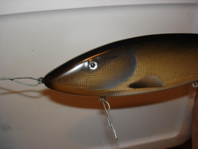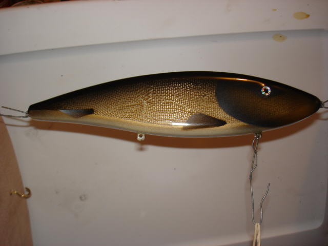 Posts: 399 Location: Burton, Ohio | Hey guys thanks for the postive. Just got home from tricker treat. My daughters first one. Lots of fun. Met up some friends and thier kids. and a ball. What the baits will called. I am not sure. Trying to think of a name. Maybe "Snow's baits" I notice that some of the top bait producers have thier name worked into the thier product. Name recognition seems to be very big and deserving. Again I just want to make a high quality bait that catches fish hopefully. I can't say that I have a track record because I don't. I don't want to get a bait to someone and it floats like a cork. Believe me the time that I spend painting them there is a much time weighting them and shaping them. Just trying to figure out how to have things in place. Not just woodworking and painting stuff, the paperwork side also. The material that I have in the prototypes is poplar. I am not sure if this bad or good. I notice that alot of the baits made up north are cedar. I have tons of rock maple and beech. Beech is an excellent wood. Very nice to work with. I can see that the cedar is boyant and light for the size. Also good with water. If you have any thoughts please reply. I really don't care what wood I use. The weight of the lures. The ones shown are about 5-1/2 to 6 oz. I am hoping down the line if people want my baits that I can customize them for thier needs and locations. One guy may want one that comes up fast. Another guy likes a slow sink. Maybe over the winter they request an order for 3 to 4 of them. I don't plan to go into heavy production but I would like to cater the needs of an individual that is serious about his baits. All of us the fish all kinds of fish have times when the smallest of detail makes the difference. A colored hook, a certain belley color, or even lures action. I hope people are willing to wait for a custom made bait that fits thier needs. If I can fill that small hole or nitch great. If I get a following and I can hold up my side of the bargian, a great relationship can be formed for a long time. Thanks for the kind words about the painting. I am learning as I go with each one I getting a little better. Believe me I have a box loaded with ones that need to be completely sanded down to the wood again. I am really enjoying the learning process. I have so many ideas I want to try. I have not fished musky's long. In matter of fact I just started late this summer. I went from having zero musky baits to have a handfull. I don't even have a bucktail yet! Maybe it is a good thing in the sense that I don't relate to any of the other producers. I am just thinking of things without a preconceived notion. Believe me I get my share of fishing in. I get about 100 days on the water. I put a hurtin on the walleye, trout and panfish species What I want out of it. If I can make 200 baits over the winter and fund my fishing addiction great. I am not a second job kinda guy. I would for my family needs. But this something that I can fund my hobby. I wake up everyday and I am thankful the gift that I was given. I get to build custom furniture at work and make custom baits at home. I really want to save for a nice rig someday. Thanks John | ||