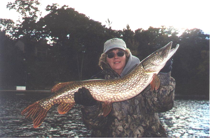 Those two pics were november cold weather Musky and pike. She also fishes on warm October days and catches 50 inchers. Kingfisher