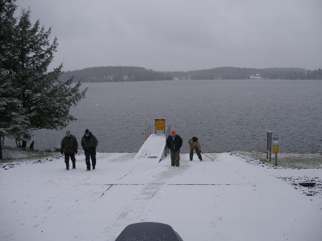 Posts: 3518 Location: north central wisconsin | Weather was pitiful on Friday so we couldn't make the trip we'd planned. Had to stick a bit closer to home. I need a new boat!!! We had my bilge running for 3.5 hours straight in the afternoon with 3-4' rollers coming over my bow regularily. We tried fishing out of the wind, but only got bit in it, and had to stick it out....UGGHH. Sucks when the waves crash over and turn to ice on the carpet. Learned to dance quite nicely on my small front deck(more I think about it maybe a bigger deck for skating up front wouldn't be such a bad thing...lol...). Heading to the landing on the south side of the lake(in the wind) for lunch we saw 3 or 4 muskies up on top of the waves. I was trying to avoid a piece of brush or wood when we saw the first one wasn't a piece of brush or wood. Anyone ever see this? We started to fish shallower in the colum all for the next couple days and that saved us. Nothing huge, with 46,and 44.5, and 44 the big ones, but we probably would have only gotten one small one had we not switched up. It was riled up, with sand and mud from the wave action beating the shallows, and the driving snow made it tough to beleive they'd be up and about in that stuff. Not sure if they were just plain 'stuck' up in the froth(almost appeared that way), or up in it for a reason. I want to thank ToddM for his awesome Floroucarbon leaders. 90% of the fish we've hooked this fall have been on his terminal ends. I have noticed better lure action(on spinners cranks and rubber that is), and action from fish with them in the clearer stuff. I used to be a naysayer on the FLoro. Not anymore. How long will one of these leaders last? I notice they get a bit 'flattened out' on the ends where they are pulled on. Does this affect the integrity? | ||