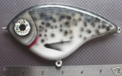 | The paint is nice no doubt about it, but I would never buy copies of other peoples baits and I know alot of other people that wouldn't either. I have to agree with nightmare, you need to apply your talent to coming up with your own designs and not copying other bait makers designs. Noiseycricket's design is a little similar to some others but thats not copying and I find it's shape unique. Bottom line is how would you like designs you put many hours of experimenting and labor into just to have them copied a week later by someone else. | |||