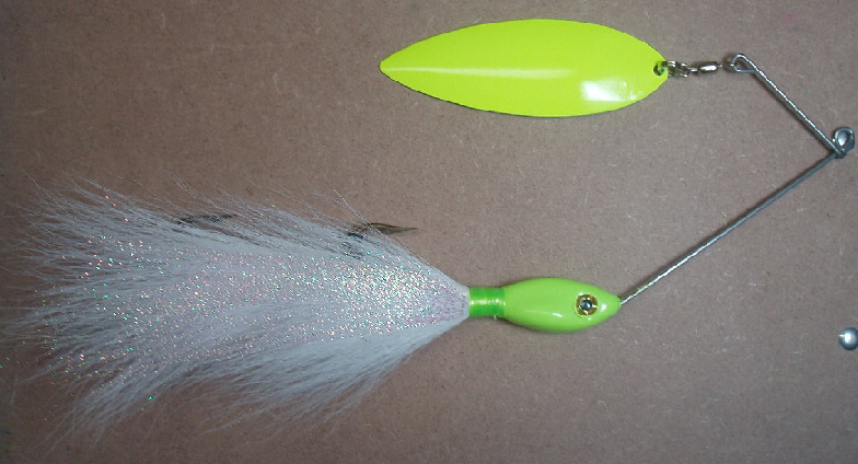 Huh, we had the stuff keep tying itself in knots, usually with fish in the bag. Again, worse with the inlines, but that is not with a hair and flash combo as you show here. Two blades better?? Looks like a cool combo there, but better than a single? Depends what you want I guess. More thump with the single. The right doubles for more speed(less resistance). Just send that one to me, and I'll test it out to see... I do lke the idea of double blades on some of my spinnerbaits of late, but not in the fashion that most are making them........