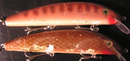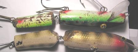 Posts: 1106 Location: Muskegon Michigan | My number one bait is the original Talonz Little Claw prototype. Being that it is made of oak and I keep recoating it this lure may catch over 100 fish before I hang it on the wall. It has 63 now with a lot of big fish to its credit. I have several other little claws with pretty good numbers as well including an old Copper Carp with 46 fish. My second best lure is my old Blue frog Loke from 1996. It has 57 fish to its credit now and still going. I have one Talonz Slasher with 31 fish but its in pretty rough shape. Here are two pics with these 4 lures. I built three of the 4 . Kingfisher Attachments ---------------- claws.JPG (16KB - 130 downloads) wood.JPG (15KB - 111 downloads) | ||