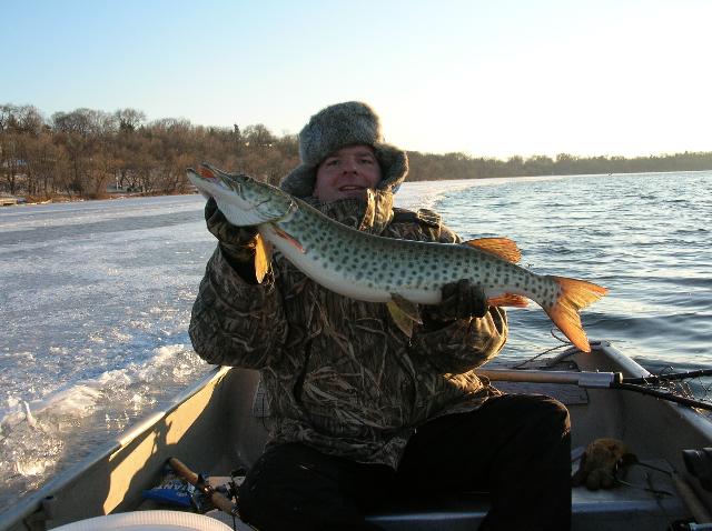 Posts: 291 Location: Minneapolis | It was a hoot on Saturday. My boat is in storage, so I put on my waders and cast for over an hour. No follows, but just getting out was fun. And bizarre to see a windsurfer, a solo canoeist, six muskie boats, and a bald eagle on a City lake in January. I even made it on a local photographers daily photo blog. I'm the poster boy for January 7: http://www.minneapolisdailyphoto.blogspot.com/ | ||