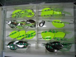 | It doesn't bother me at all. sometimes we have a bad day and everyone is entitled to one ever now and then and I hope that is the case here. If these blades were the part of the tackle getting bit then I would have went with a much better paint product to start with. I was doing a search for painting blades and this site came up. I see that its a muskie forum and can understand the desire to have a super paint job. If I was making a $10 spinner then yes I would be taking my sweet time and doing the best I can to make each piece of the highest quality. These are constantly being snagged on bottom and lost so they need to be cheaper. No one wants to continually throw $10 bills in the water all day. I'm only making $9 per dozen and that is far from being all profit. I bought 4,000 blades, a 1,000 hooks, countless beads, at least ten different colors of paint so far, clevises, bags, cardstock and added my own artwork to the cardstock and staples and bags. Not to mention the ink that I used from my printer to print out the card stock and the gas to deliver these to different places to sell. If I made more money per lure then yes I would spend more time and buy a decent air brush and do each blade as a work of art. Once you figure out all the cost and time I put into making these so far, I'm still in the hole. I have yet to make a profit and probably won't for some time. I just spent more money on floats because my last 5 cards I sold previously sold out in less then 2 weeks. They must be working because the other night crawler harnesses that are sitting right next to these ones are still setting there and people are coming back for the ones I'm making. I could continue to put out a so/so item and continually sell it but I do want to improve and make sure that all my customers keep coming back for more. I appologize if the way I worded my post rubbed you the wrong way Bob and I hope that we can be friends in the near future. I don't expect an appology but I do want the feedback of those who are most critical of what I'm doing so even though your reply was a bit harsh I do want your honest opinion. Thanx for reading. Swizzle | |||