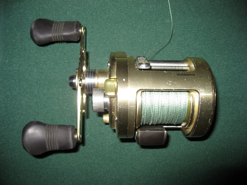(SOLD) Shimano Calcutta 401TE with box, wrench oil, etc. I had this serviced by Shimano last spring and used it about 4-5 days on the water last season. It does have normal boat rash, but it is in excellent working condition. Spooled with 80lb super line (Power Pro or Spiderwire).