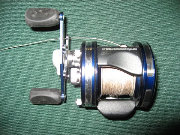 AbuGarcia 5601 C4. This reel has a half dozen days on the water. Works great, very little boat rash, almost new. Spooled with 65 lb super line (Stren Super Braid)