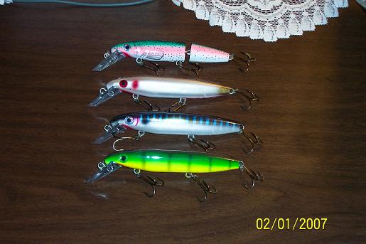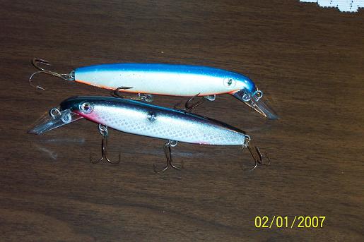 second pic are stan durst paint jobs one is a gizzard shad on a floater and the blue is a countdown model 15.00 each