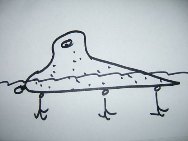 Posts: 786 Location: Minnesota | Q: Do little ducks and geese dive for food like mamma and pappa? If so, make a "Diver Duck" or "Diving Baby Loon" I think muskies and pike like little tender duckies!!!! Would be novel I think too!!??? I have only seen top water duck lures... See my bad drawing for what I mean. You would need to weight it right and have some type of diving surface on the front of the lure. If made right and worked right you could also "walk the duck" vs making it go sub surface. My Weagle will go subsurface if worked right. Yes....this could be a nice little surface/subsurface lure. Just my opinion! James PS-I still want to see that little foam sucker blow up into a thousand little pieces from a 50" muskie! LOL Would be a nice video to start the "Next Bite" show. Edited by Grunt Lures 2/9/2007 5:16 PM Attachments ---------------- Picture1.jpg (17KB - 173 downloads) | ||