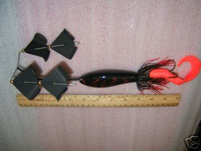 Posts: 786 Location: Minnesota | Just curious if anyone has seen these before and/or used them. Not sure if the guy makes tham anymore or not. Got them from Dads Shad. I don't think he ever did get into selling these to muskie fishermen. I think his big market was for bass. Nice concept though for muskeis IMO. I assume he made the bodies? If not, anyone know who makes them? James Edited by Grunt Lures 2/11/2007 7:57 AM Attachments ---------------- 4c18_1.jpg (14KB - 133 downloads) 4fe3_1.jpg (22KB - 125 downloads) | ||