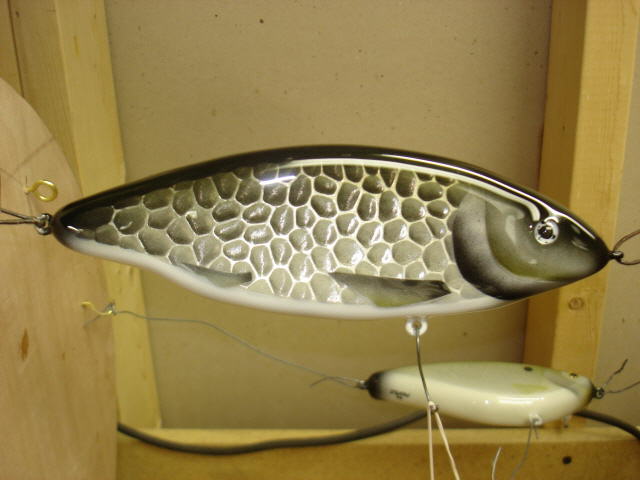 Posts: 399 Location: Burton, Ohio | Hey everyone! I did a spin off of a white fish. It is a glider 8" long. Foil base. Lots of flash in the light. Slow sinking. A fun one to do. Lots of epoxy Take care John Attachments ---------------- DSC02283whitefish.jpg (37KB - 202 downloads) | ||
