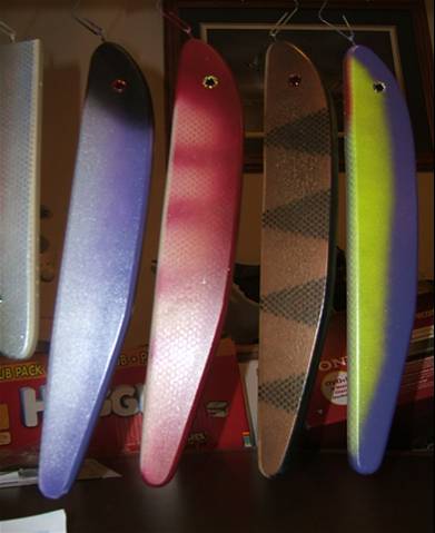 Posts: 786 Location: Minnesota | Thanks woodie! Here are a few I did today. The rights one is the most contrast. Going to do a few more this week that are real ugly. Also did a new one in bronze for some stained lakes. Calling it "The Spartan" Grunt. Always hear if you lure disapears in the water that is a good thing too James PS-These still look a little dull. They don't have any clear coats on them yet. PSS-If "Mr. Rapala" reads this, thanks for the color schemes. LOL Yes, I got some of the ideas from my Cabelas catalog in the bass lure section. Edited by Grunt Lures 3/13/2007 9:02 PM Attachments ---------------- Picture1.jpg (20KB - 116 downloads) | ||