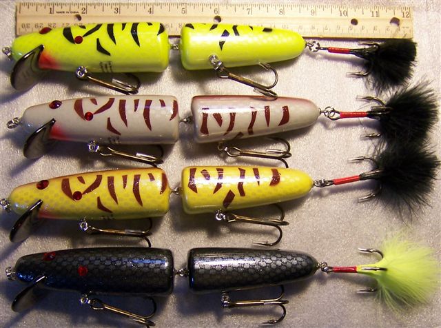 | Jump to page : 1 Now viewing page 1 [30 messages per page] More Muskie Fishing -> Basement Baits and Custom Lure Painting -> A few of my newest creations |