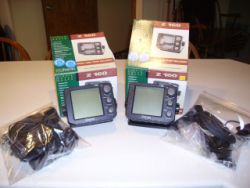 Both units come with power cords, speed/temp sensors and mounting hardware. One unit has trolling motor transducer and the other has high-speed transducer for mounting on the transom.