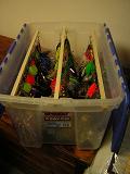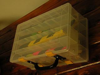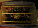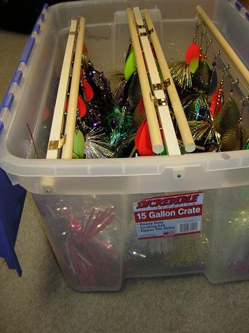 Posts: 162 Location: Bemidji, MN | You guys who are making/ selling bucktails. Has anyone come up with a good box to transport large quantities around in, and have them be visible for display? I have outgrown the 5-gallon bucket, which inevitably flips over in the back of the truck leaving me with a tangled mess. | ||