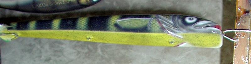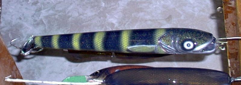 Posts: 13688 Location: minocqua, wi. | could you paint a sauger pattern on an old warhorse and only give him one eye ... and a patch on the other one? it's one of those baits with a personality to me and i guess i'd consider investing in him for all the memories he's given me. he's had the crud kicked out of him and spent a full year with a shark fin (a muskie tooth that stayed stuck in his back) ... too bad i didn't glue it in as it was lost later .... let me know if it's something you might consider doing snax ... thanks | |||