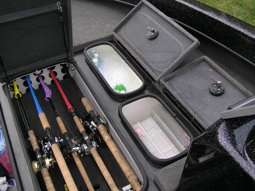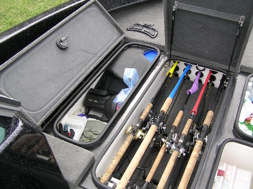 I hear this is a good design for musky fishing. Could someone who runs this boat tell me how tippy it is and how much water it needs to float? How long rods in the locker?