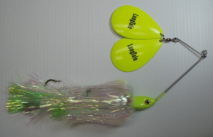 Posts: 1939 Location: Black Creek, WI | Well... the Dubba 10 in-lines are rockin' the musky world... and for good reason. Fish just plain EAT THEM. I prototyped some Super Chinook and Musky Bling type knock-offs last season... and chose not to copy them (They are both awesome spinnerbaits by the way). But, after experimenting with a tip from my friend Roger Watters to put two blades on a single split-ring... I came to realize that it works awesome and still keeps the advantages of a true spinnerbait. Combine that with too many testimonials that the "smooth whoosh" of water from the double blade configuration just plain getting bit when nothing else will... I think its time to unveil Long Tale Tackle's newest addition. The Double Magnum Long Tale. Attachments ---------------- Double Magnum Hot Whitefish LongShot.jpg (99KB - 94 downloads) | ||