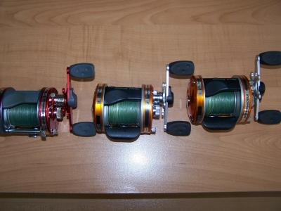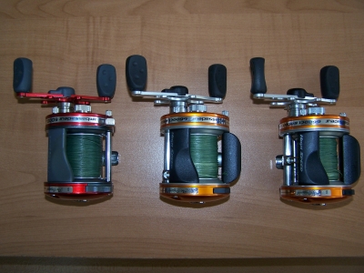 reels were used two seasons,no scratches or boat rash. they look and work like new,cleaned and lubed in feb. new 80lb spiderwire stealth,with 20lb flouro backing installed in feb. and only on the lake about three times this spring. im in the middle of getting my new house built this year and my fishing is on standby for now.(someone shoot me!!)