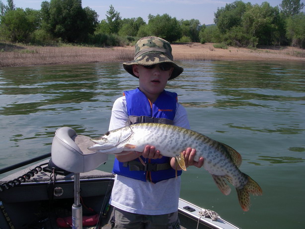 Posts: 1764 Location: Ogden, Ut | Extended my weekend a bit and took the boys out for tigers this morning. We were only able to fish for about 3 hours; it got too hot for the kids (they are wearing life vests - not too breathable). Nik scored a 29 on a Super Shad Rap (thx for the re-paint Nightmare); which he promptly claimed as his lure. Ice cream for all on the way home. It's going over 100 F again today I'm afraid. S. Attachments ---------------- IMGP1633_resize.JPG (102KB - 209 downloads) | ||