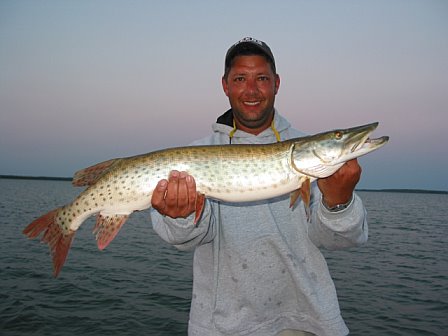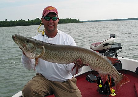 | Our annual cass lake trip produced a 49" for me and a 49.5" for Brad. Mike lost 4 fish, 3 on my boat that all had a chance to go 50". All 3 were hooked, lost one on a figure 8, another lost by a 3' high jump and thrash, and another that got wrapped up in the motor and broke the line in 3' of water in the reeds. We did have alot of fun this year. It's too bad poor Mikey couldn't get one of those fish in the boat! He's been on a tough streak with losing fish. As always, it was great to see Brian Jones and Samantha. Somebody needs to ask Samantha about her cheesecake! Out of this world!!!! Brian put us on some walleye, so we had a few to take home with us. Overall, another wonderful week at Cass Lake! | |||