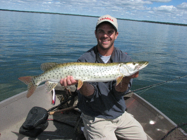 Posts: 101 Location: Northern Illinois | Spent last weekend in Northwest WI. 17th was blue sky with a North wind. We tried everything in our search for active fish, trolling crankbaits, fast and slow surface baits, burning bucktails, jerkbaits, glidebaits, nothing happened but son got a big largemouth (5 lber) on a muskie size buzzbait at sunset. 18th, drizzled all day with the wind changing directions all day. Had a nice 40" follow on a bucktail at mid-day, then my son got his first muskie at 7:30 pm (30"), on a Suick. I caught a bass on a trolled Depth Raider. Son had a 40" hit a Suick but was off in 3 seconds. A friend in a nearby boat caught a nice fat 46"er on a Hughes River glide bait. 19th was drizzling again, saw nothing and had to head home. My friends headed out to Mille Lacs, and on Monday he got a 53" er, his buddy got a 46"er, both on double Cowgirls. They're fishing today, so I don't have a report for Tuesday yet. | ||