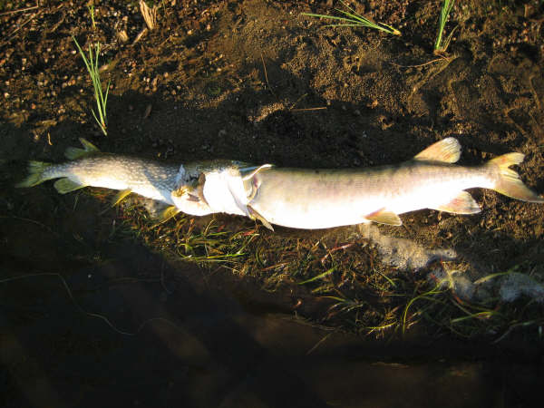 Posts: 113 | This was found by a friend of my future father- in- law on a lake just north of Fish Trap in MN. So what is Tougher? The 40" musky or the 33" pike that tried to eat the musky? Pike really are dumb.......... Edited by Will Dykstra 8/27/2007 2:56 PM Attachments ---------------- pike.JPG (41KB - 237 downloads) musky.JPG (50KB - 249 downloads) | ||