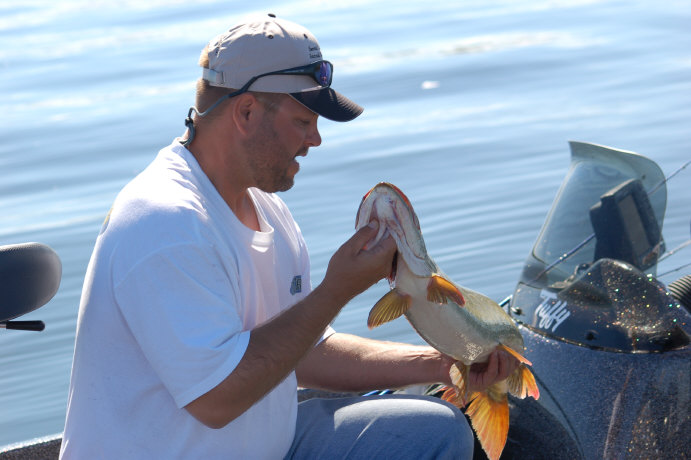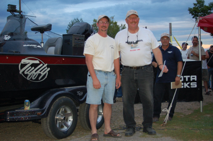 Posts: 32955 Location: Rhinelander, Wisconsin | 83 boats hit the water this morning under a bell of high pressure with the promise of cool temperatures, cloudy afternoon skies, and a front moving through. Instead, it was at least 80 on the water, absolutely calm, and bright bluebird sunny until...you guessed it... an hour after the contestants left the lake. 7 Muskies were caught and released, from 34.5 to 42". Not even all that many were reported lost, indicating a very tough bite. This event has produced as many as 26 fish in a single day in the past. The Mundt Brothers took home the victory with a 42.5" muskie caught on a bucktail this morning. The rest of the leaderboard will be updated as soon as the video we shot today is reay to post. The 16th annual Kevin Worrall Memorial was a complete success, mostly because of hard work by the Gerrits, the judge boat volunteers, the product sponsors(MUCH more on that later), and the contestants. This is just plain a fun event for a great cause. Look for a complete update tomorrow!!! Attachments ---------------- DSC_0373.JPG (58KB - 198 downloads) DSC_0386.JPG (50KB - 190 downloads) DSC_0380.JPG (79KB - 185 downloads) DSC_0346.JPG (61KB - 189 downloads) DSC_0428.JPG (66KB - 187 downloads) DSC_0439.JPG (76KB - 196 downloads) DSC_0412.JPG (81KB - 191 downloads) DSC_0426.JPG (117KB - 187 downloads) DSC_0443.JPG (96KB - 190 downloads) | ||