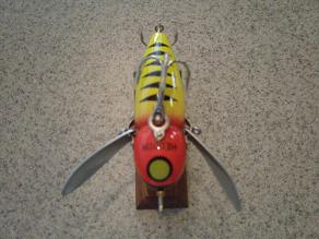 I have one of the limited edition Heddon Crazy Crawlers that were made for the Japanese market. This is a 2150 Musky size crawler. Lure is made of wood with 2 piece hardware. Comes with box and certificate of authenticity.