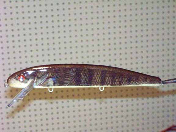 More Muskie Fishing -> Basement Baits and Custom Lure Painting -> smallmouth pattern jake