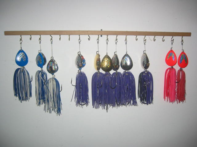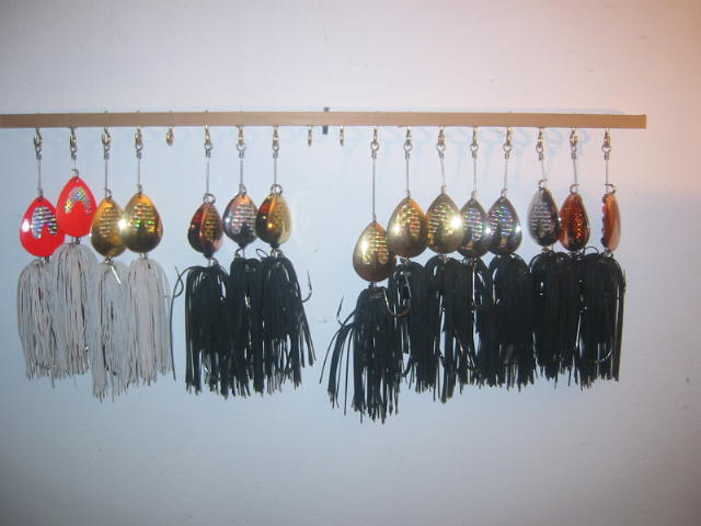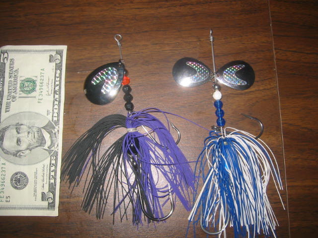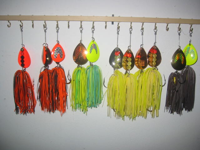 If you have fished around Bemidji for awhile you will have probably seen or used The Musky chicken Bucktail. It is a nice little bait with either a single#7 or double #6 colorado blade. The blades are the heavier .040 guage. The skirt is made from living rubber. There are 2 single siwash hooks. I have aquired the musky chicken from its original maker, and will be making them for as long as there is interest in them. I have a bunch left for this year, and I will be offering them at a special price. They normally sell for $9.99 each. I will sell what I have for $6.00 each. Buy 3 or more and I will pay shipping. I will also be willing to make up some custom colors at this price as long as I have the parts in stock for them. The pictures show what I have. IM me i you are interested.