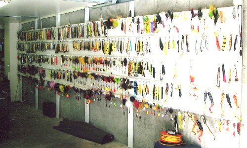 Posts: 65 Location: De Pere Wisconsin | Looking for pictures and idea's for wintertime bait storage and repair that would also double to hold baits not in current rotation, year round. I have plenty of space, so that is not a concern. Seems every winter I end up with baits all over in a basement room and then am either getting in trouble for the mess from the boss or petrified that one of my two curious dog's will get in the mess. I want to be able to see all baits (aprox 300) so I don't foolishly duplicate buying anything again or for a 4th time that I thought I didn't have - and also have easy access for repairs and general daydreaming about next year. Main concern is that the height is up high enough that a german shorthair can't reach...so maybe chest high or better. Any pics would be great - I need a project! | ||