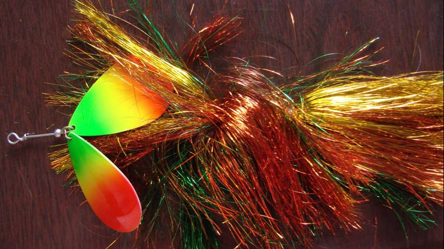 Posts: 4053 Location: Land of the Musky | Thanks RM. That means a lot coming from you! I am in the camp that is does not matter what a big bucktail like this looks like. Just that it has two big #!0 Colorado blades on it. With that said my hair tails sell like crap! LOL and it is because tehy have hair and not flashabou so I must conform to the market place | ||
