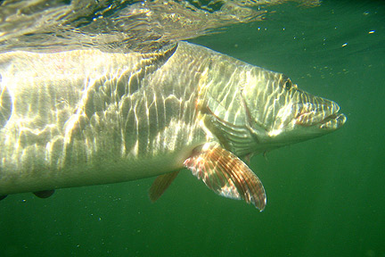 Posts: 2865 Location: Brookfield, WI | Nice pics, buddy. Do you have any of you swimming with a school of tigers? I'd love to see you frolicking in that clear water with your striped friends. I imagine they would gather around you knowing you released their queen. Kevin Can you sense the turkeys' fear? Edited by MuskyHopeful 11/20/2007 4:06 PM | ||